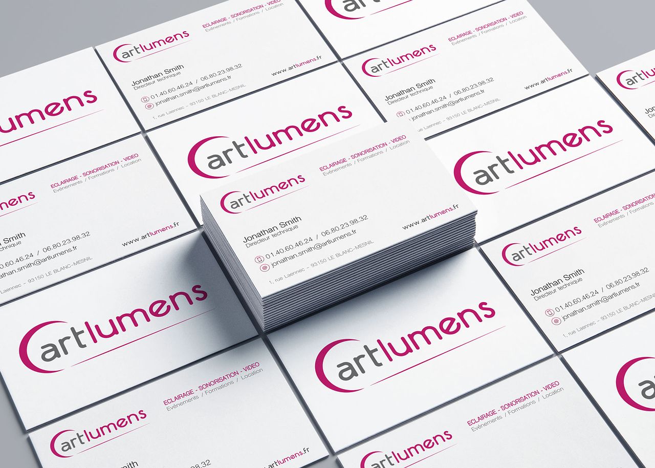 Cartes de visite de la société artlumens, fournisseur de solutions clefs en main dans le domaine de l'événementiel et du spectacle.