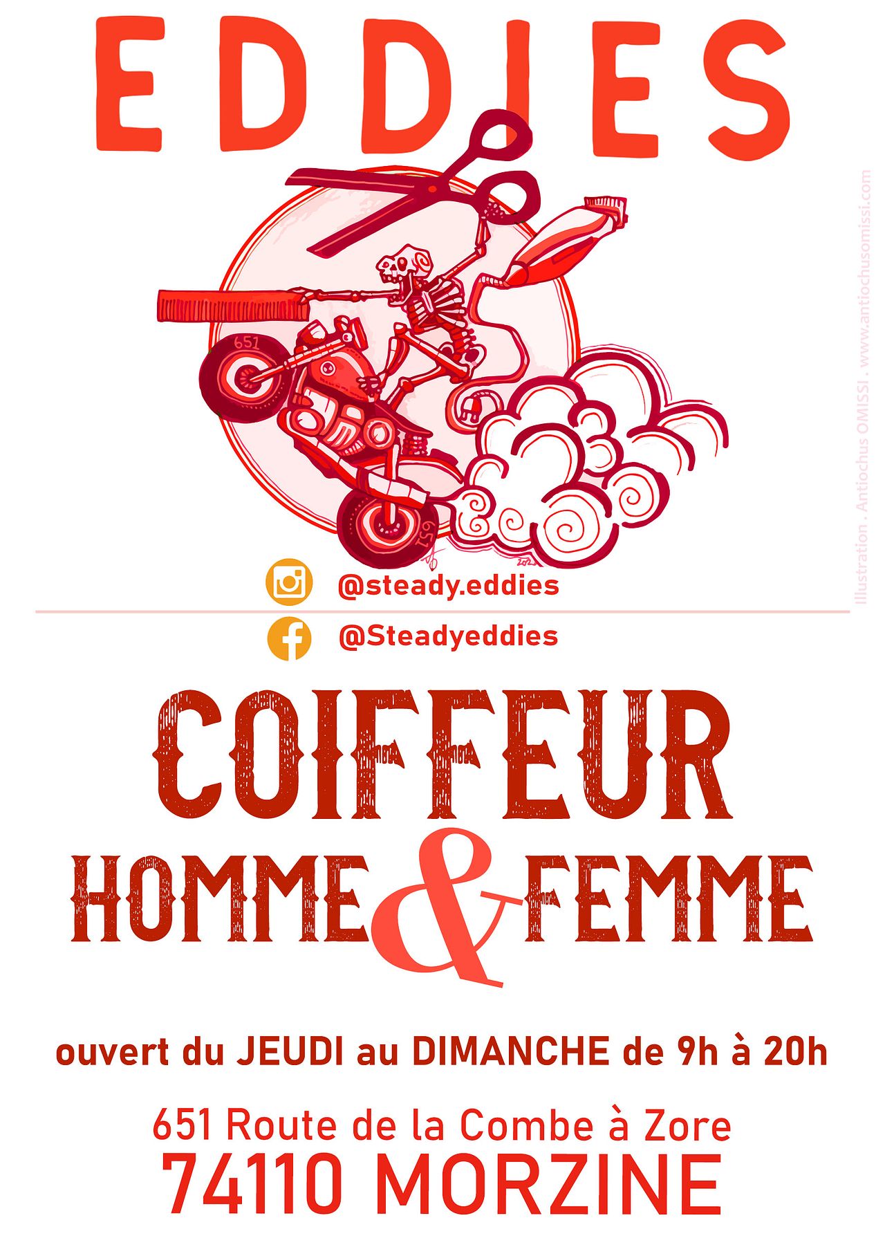 Flyer pour le coiffeur Steady Eddies à Morzine (Haute Savoie).