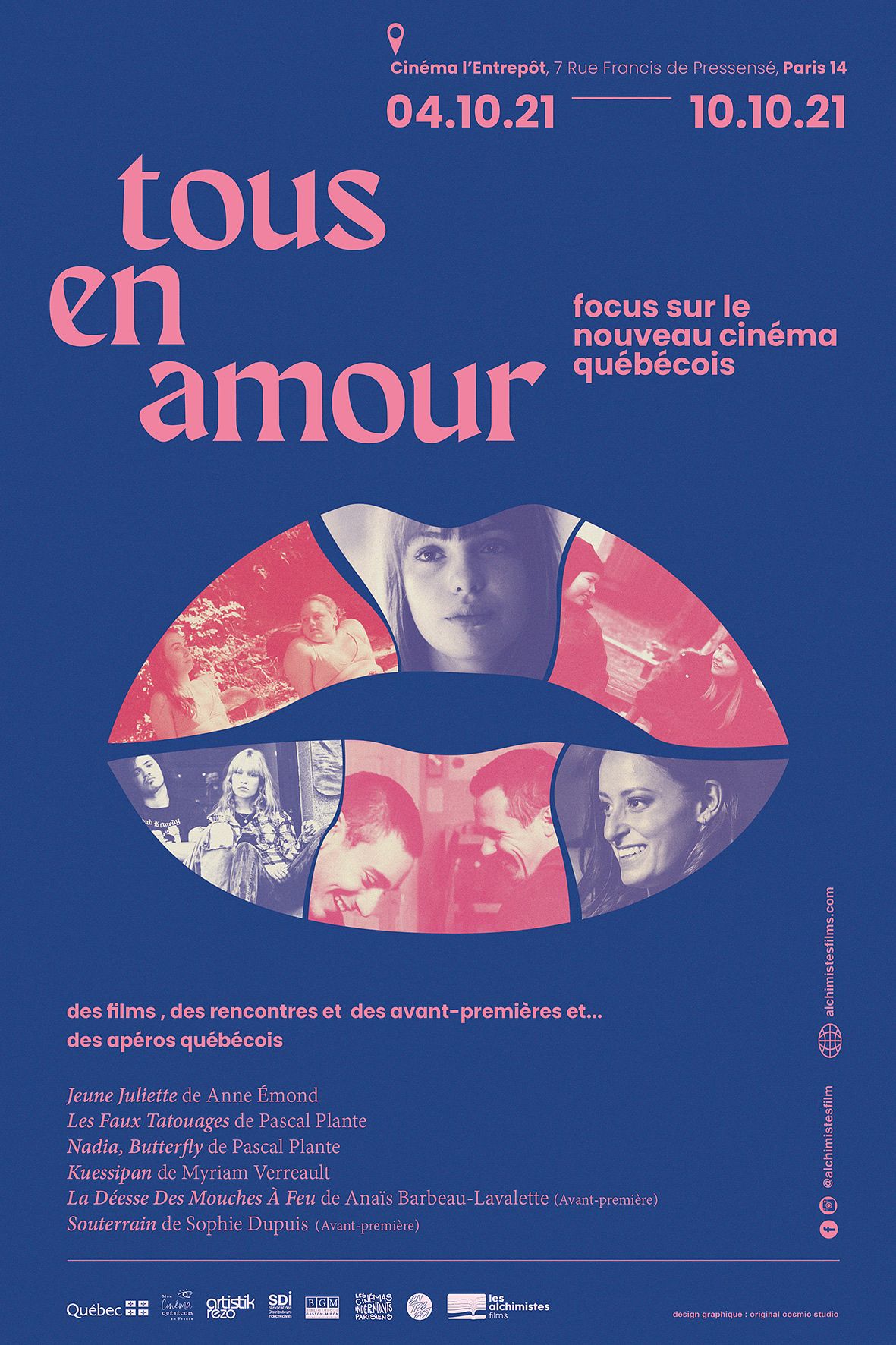 Réalisation d'une affiche et d'un dépliant pour le festival du nouveau cinéma québécois "Tous en amour".