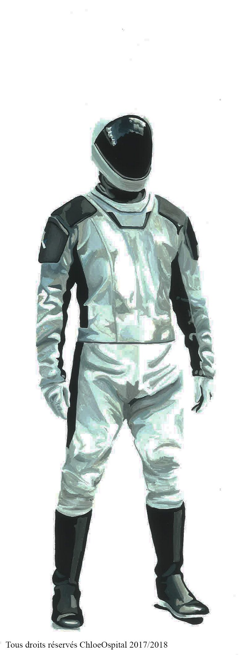 Exercice personnage technique traditionnelle : gouache ; reproduction de la combinaison spatiale.
