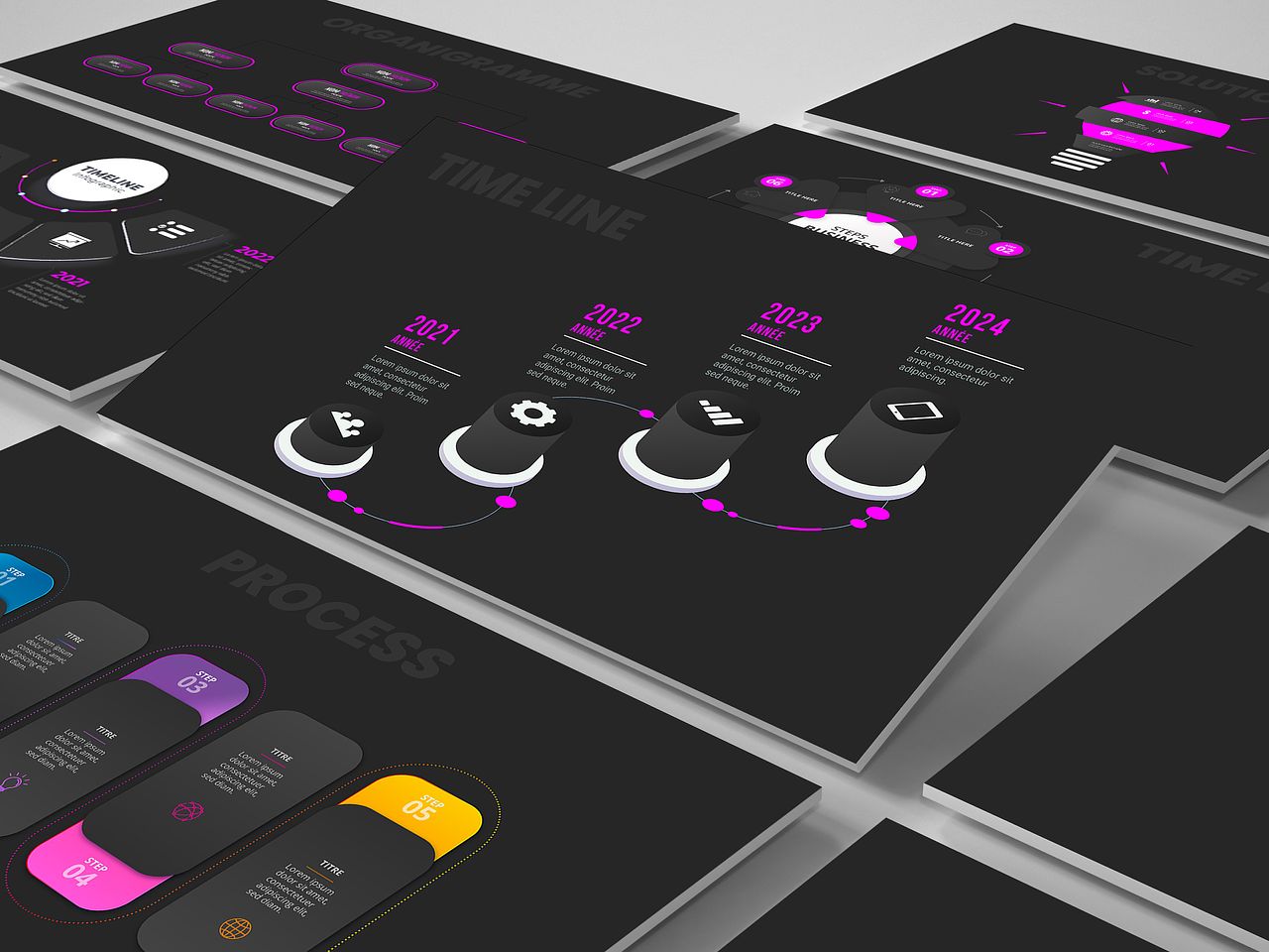 Maquette de présentation powerpoint spéciale infographies. N'hésitez pas à me contacter pour la mise en page de vos présentations ppt ou template de diapositives.