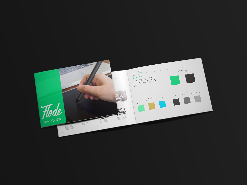 Etablissement de charte graphique et réalisation d'un brandbook PDF consultable sur mon site: http://florentdepoorter.com/brandbook.html