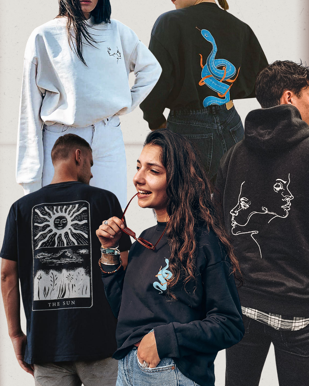 Exemples de quelques réalisations de design imprimé sur vêtements, pour marque PYLLS Streetwear