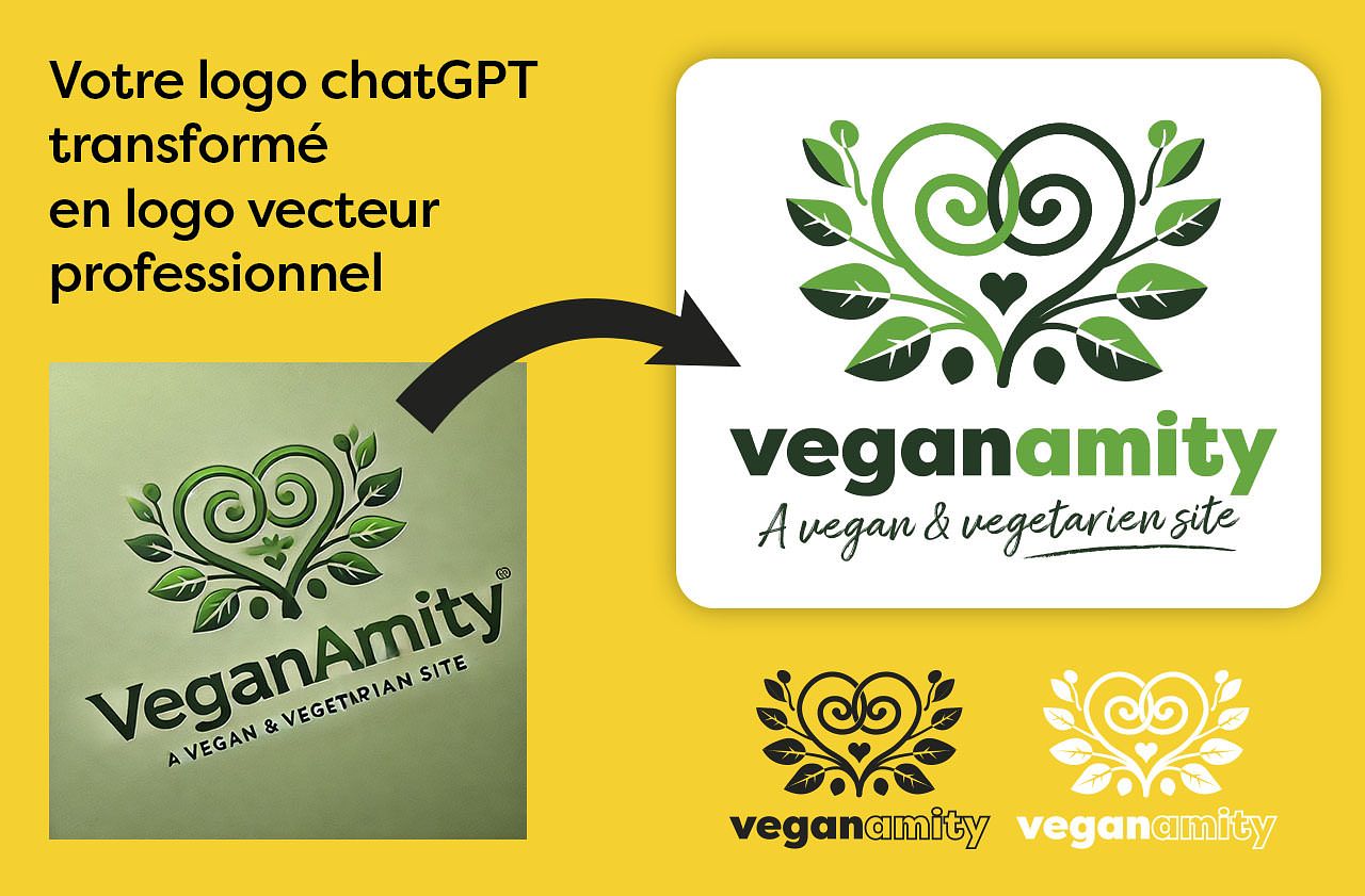 Valeur ajoutée d’un graphiste professionnel qui transforme un logo IA de base en une création vectorielle exploitable pour l’impression, le web ou le branding
