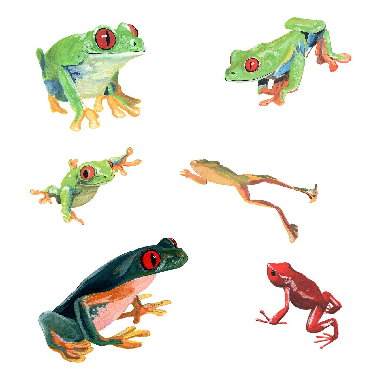 Grenouilles à la gouache.
